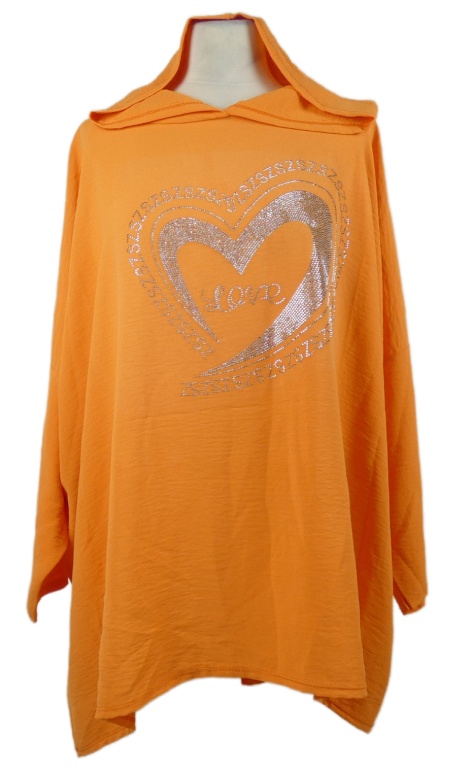 Dámska oranžová tunika so srdíčkem z kamínků a kapucňou