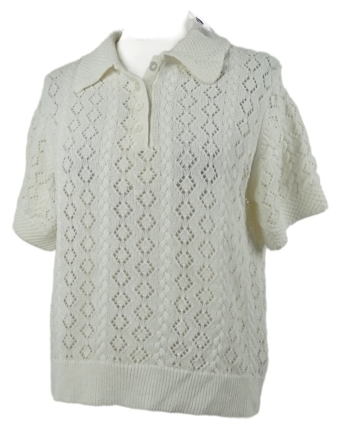 Nové - Dámske biele ažurové pletené tričko s golierikom Primark