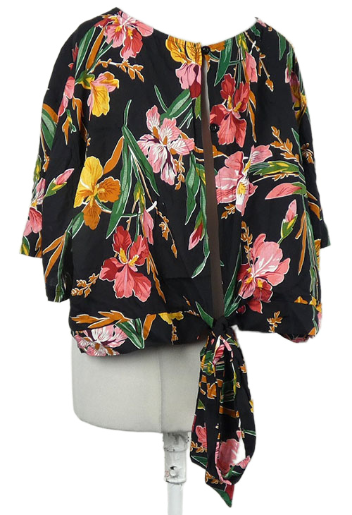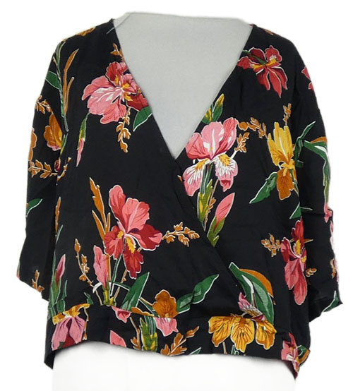 Dámska čierna kvetovaná crop blúzka s uzlom Shein