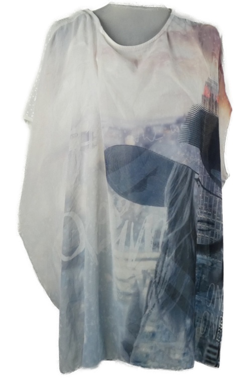Dámska bielo-sivá šifónová tunika s potlačou a flitrami Gina Benotti