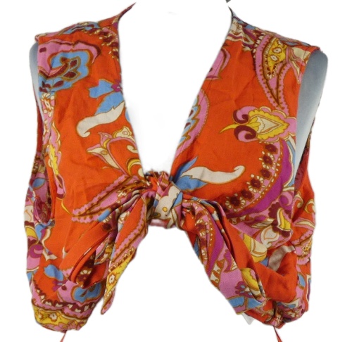 Nové - Dámský červený květovaný crop lněný top na zavazování