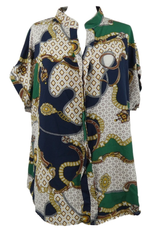 Dámska zeleno-tmavomodro-béžová vzorovaná blúzka Shein