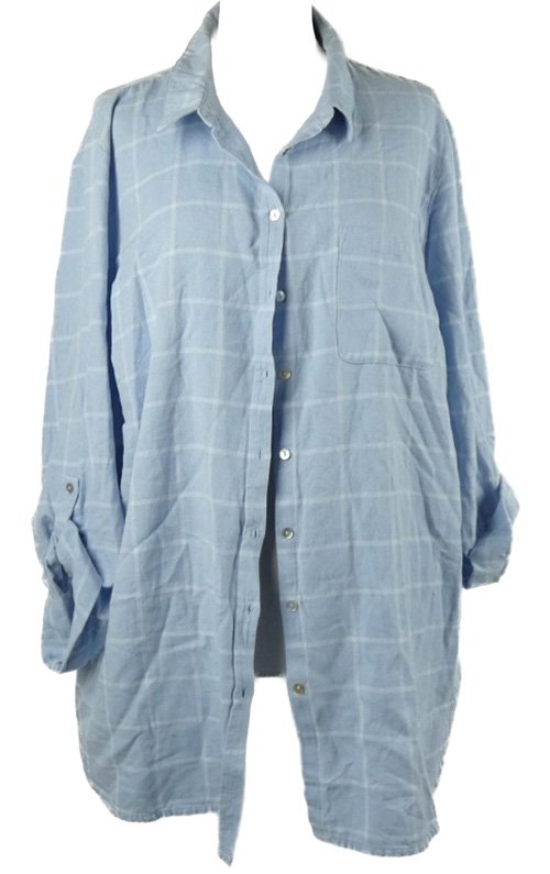 Dámska svetlomodrá kockovaná blúzka s rolovacími rukávy Bonmarché