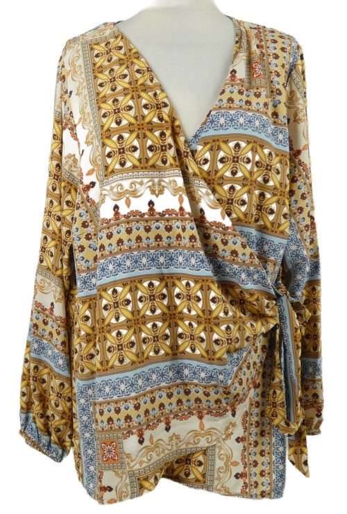 Dámska béžovo-modrá vzorovaná zavinovací blúzka Vila