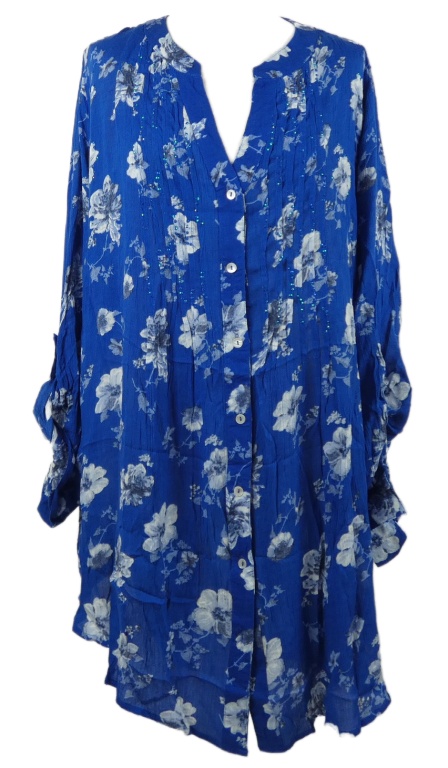 Dámska zafírová kvetovaná blúzková á tunika s flitrami Yours vel. 58
