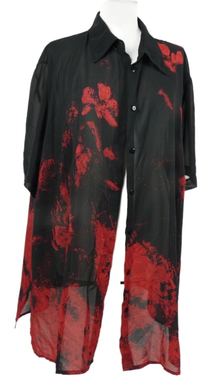 Dámska červeno-čierna šifónová blúzka s květy vel. 58
