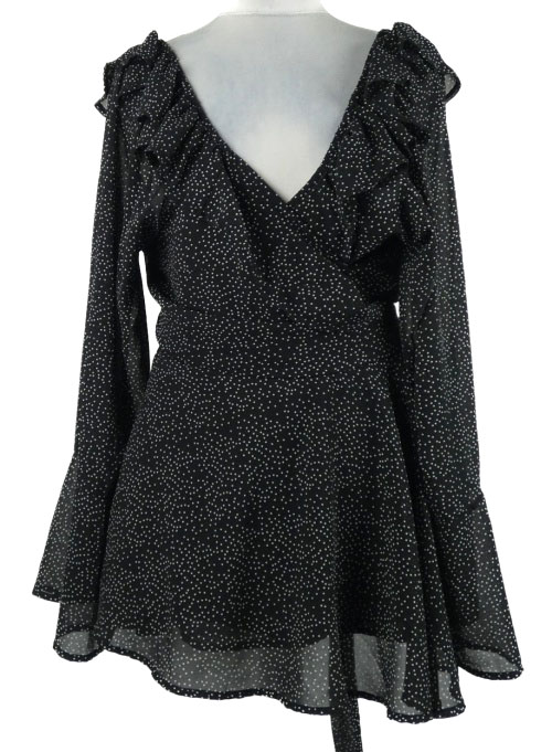 Dámska čierna bodkovaná zavinovací šifónová tunika In the Style
