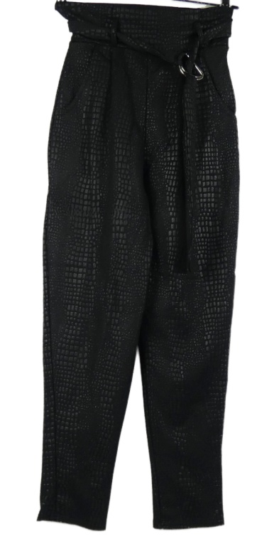Dámske čierne vzorované paperbag nohavice s opaskom PrettyLittle Thing