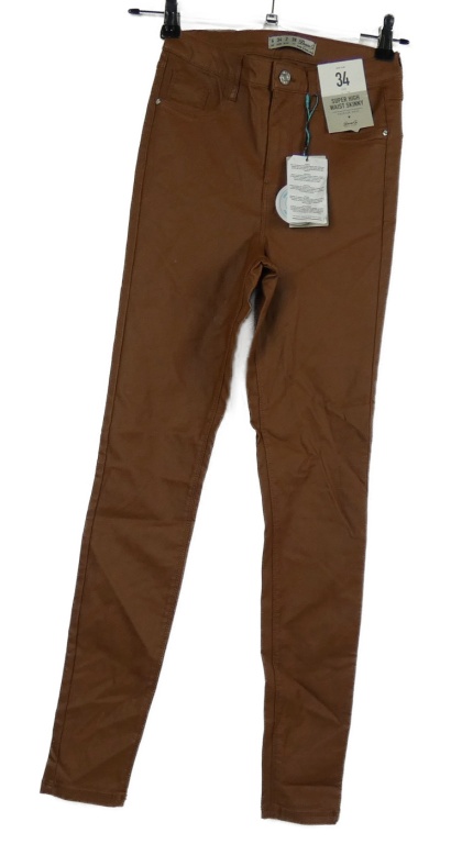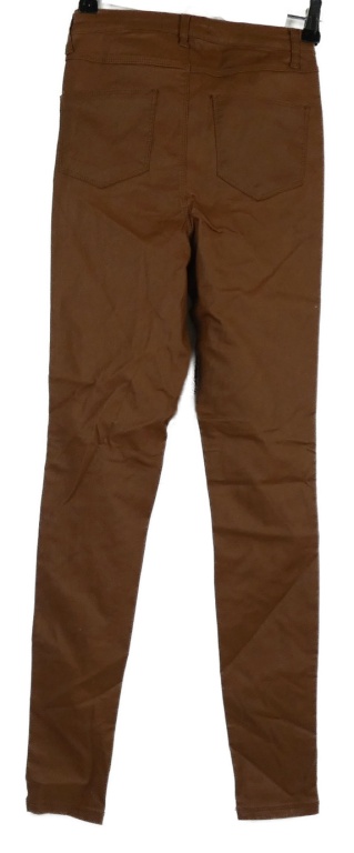 Nové - Dámske skořicové potiahnuté é skinny nohavice Denim