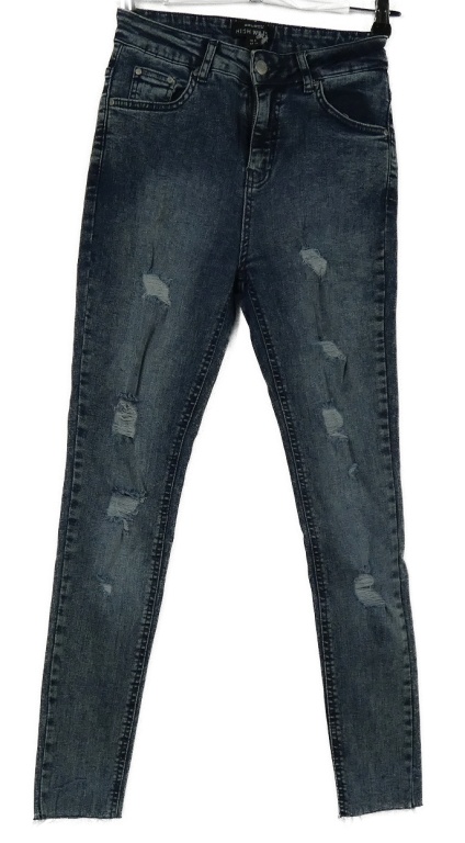 • Dámske tmavomodré hig waist rozstrapkané é rifle s vyšúchaním Select