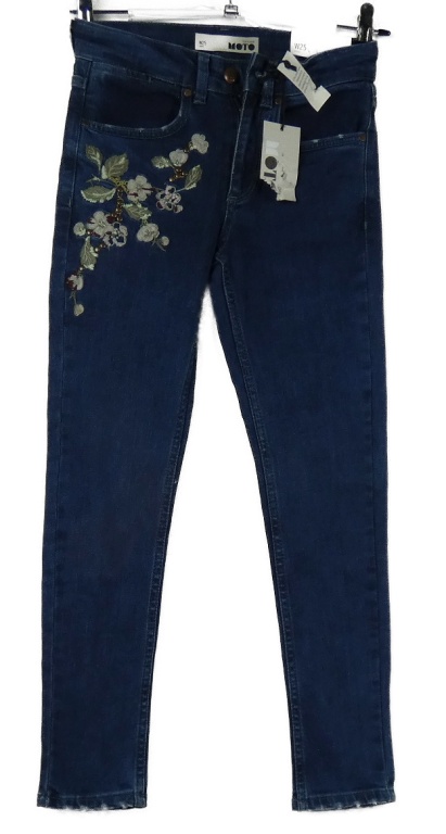 Nové - Dámske tmavomodré členkové é rifle s kvetmi Topshop vel. 25