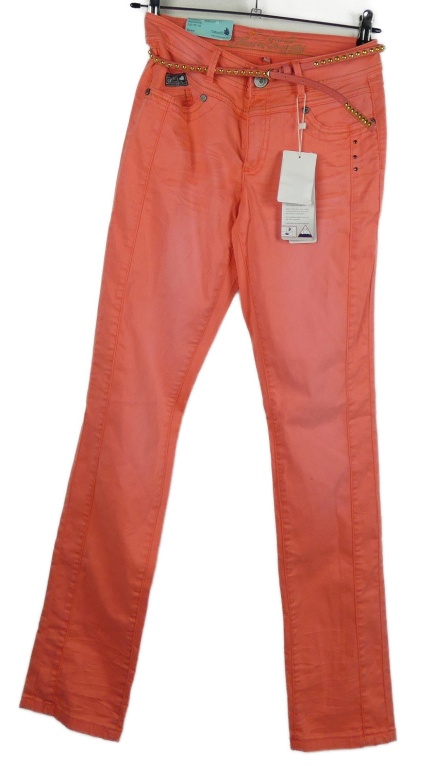 Nové - Dámske lososové skinny rifle s opaskom S´Questo