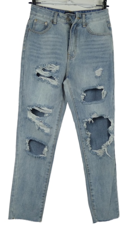 • Dámske svetlomodré členkové é rozstrapkané é rifle s dierami Momokrom