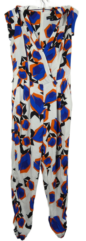 • Dámsky modro-oranžovo-čierny vzorovaný letný nohavicový overal River Island