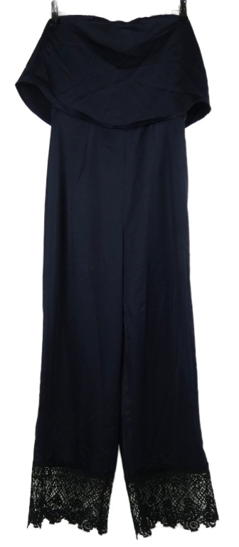 • Dámský tmavomodrý saténový culottes kalhotový overal bez ramínek s čipkou MissGuided