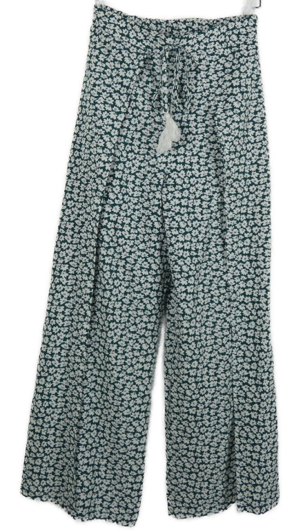 Dámske tmavozeleno-biele kvetované sukňové nohavice Shein