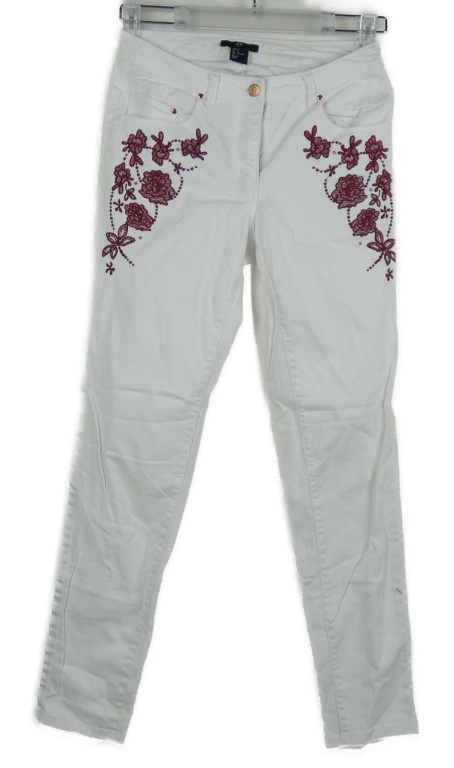 Dámske biele skinny rifle s kvetmi H&M