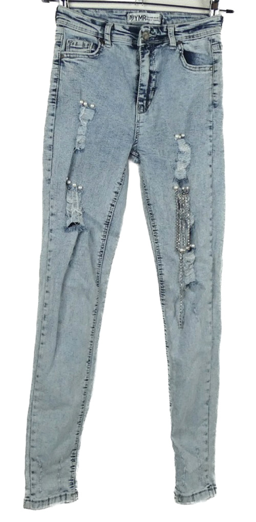 Dámske svetlomodré skinny rifle s vyšúchaním a kamienkami