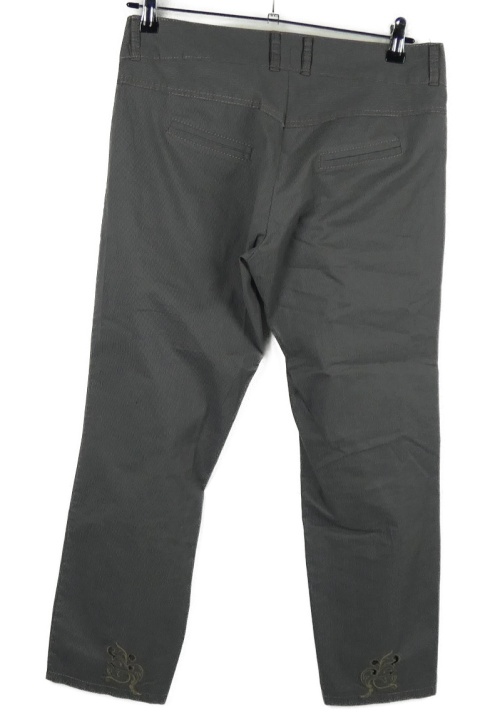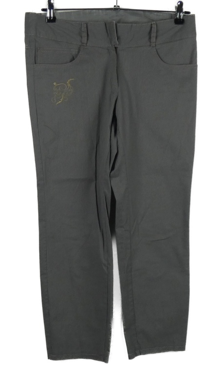Dámske hnedé prúžkované capri nohavice s výšivkou