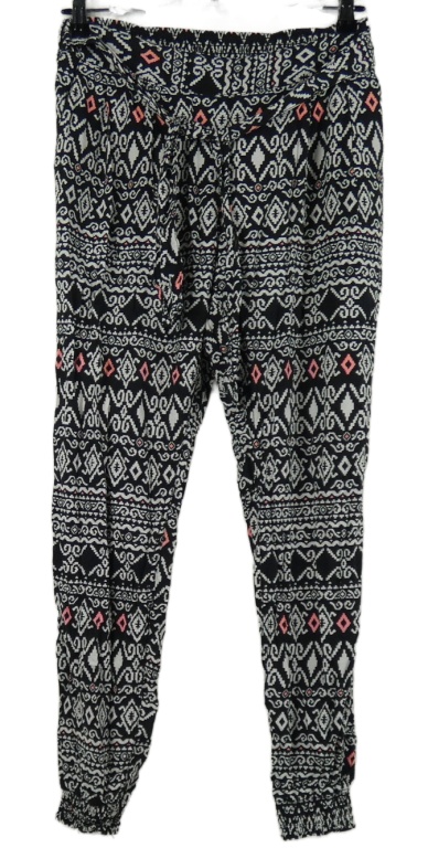 • Dámske čierno-bielo-ružové vzorované voľné é nohavice s opaskom Tom Tailor