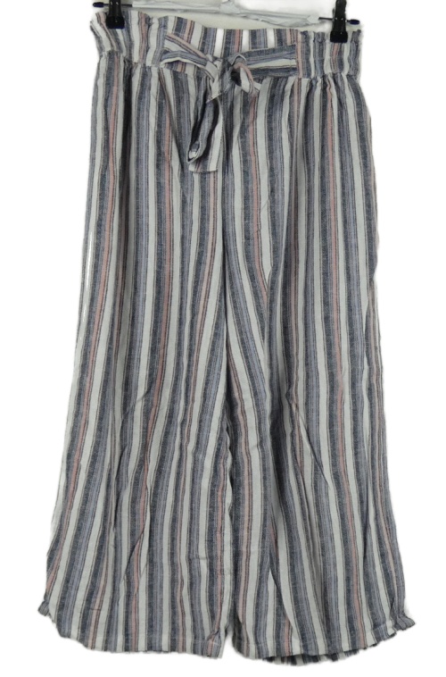 • Dámske tmavomodro-bielo-ružové pruhované culottes ľanové nohavice s opaskom C&A