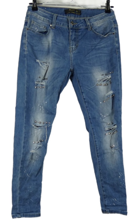 Dámske svetlomodré skinny rifle s dierami a cvočkami
