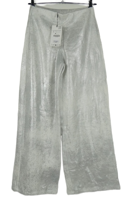 Nové - Dámske bielo-strieborné pletené široké nohavice Zara