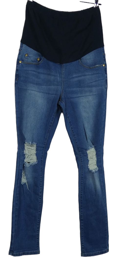 Dámske modré tehotenské é džegíny s vyšúchaním Boohoo