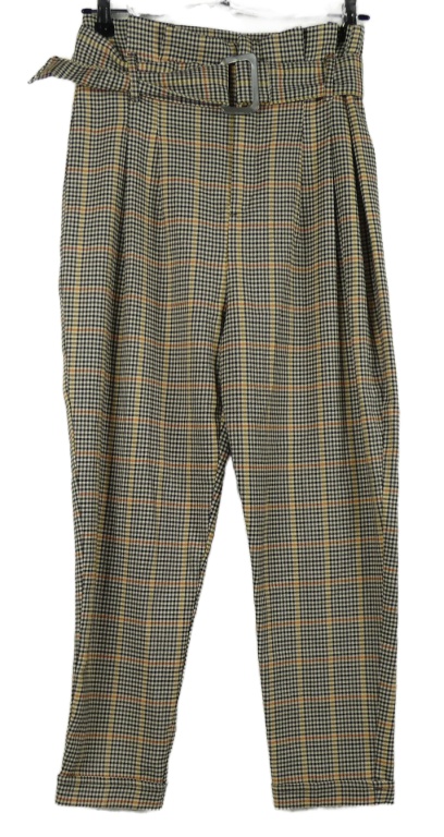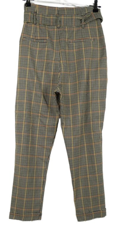 • Dámske čierno-žlto-oranžové kockované paperbag nohavice s opaskom Bershka