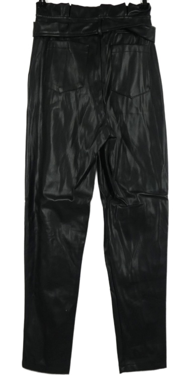 Dámske čierne koženkové paper bag nohavice s opaskom