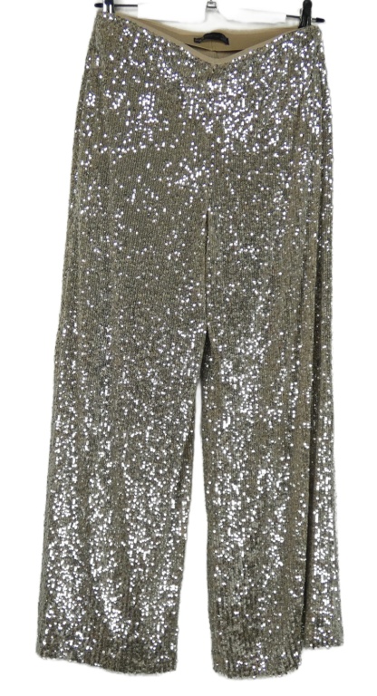 Dámske pudrovo-čierne flitrové palazzo nohavice M&S