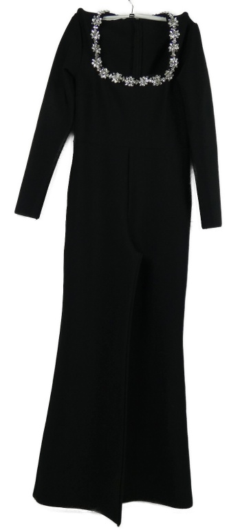 • Dámsky čierny nohavicový palazzo spoločenský overal s kamínkovou aplikací