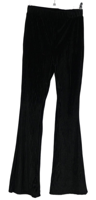 Dámske čierne zamatové rebrované zvonové nohavice Shein