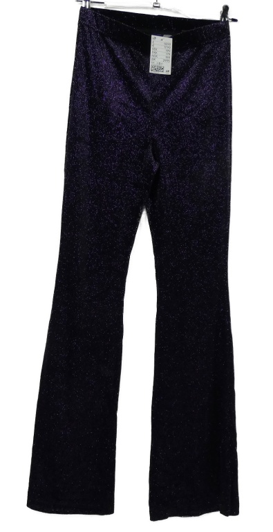 Nové - Dámske čierno-fialové trblietavé zamatové zvonové nohavice H&M