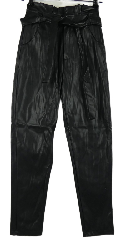 Dámske čierne koženkové paper bag nohavice s opaskom