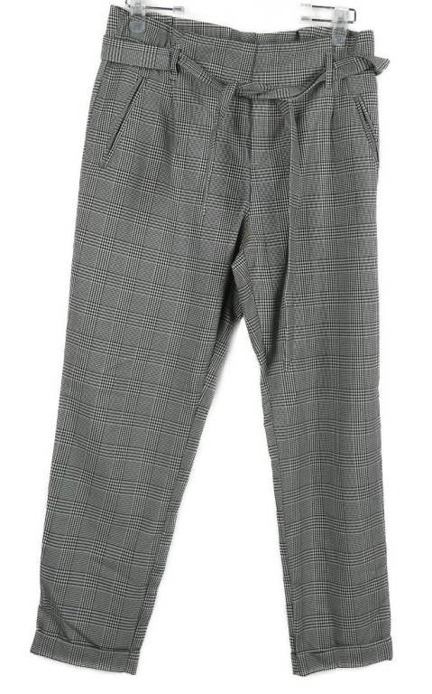 Dámske čierno-biele kockované paper bag nohavice s opaskom Zara
