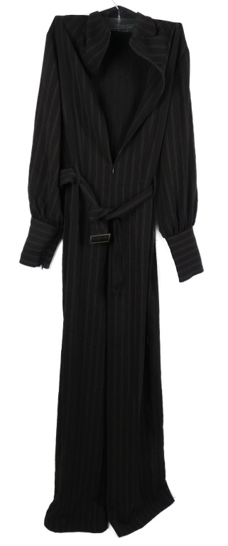 Dámsky hnedý pruhovaný nohavicový palazzo overal s opaskom