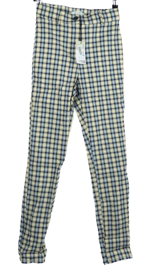 • Nové - Dámske tmavomodro-žlté kockované skinny elastické nohavice Primark