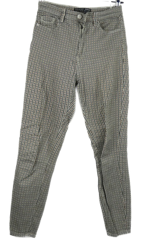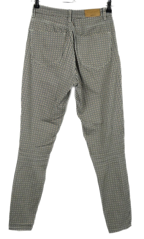 Dámske čierno-hnedo-biele vzorované skinny nohavice s vysokým pasom Stradivarius