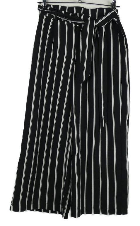 Dámske čierno-biele pruhované culottes nohavice s opaskom
