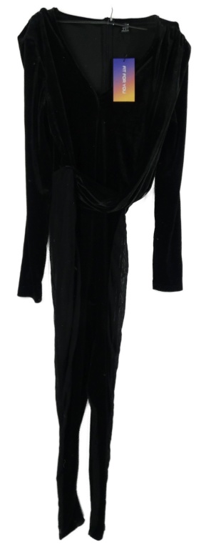 Nové - Dámsky čierny sametovo/tylový elastický overal Shein