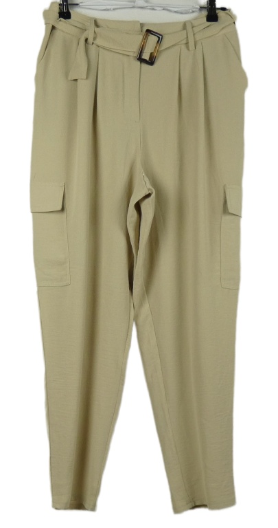 Dámske béžové cargo nohavice s vreckami a opaskom TU