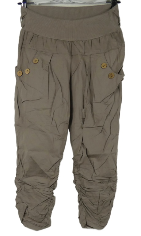 Dámske béžové plátenné capri nohavice