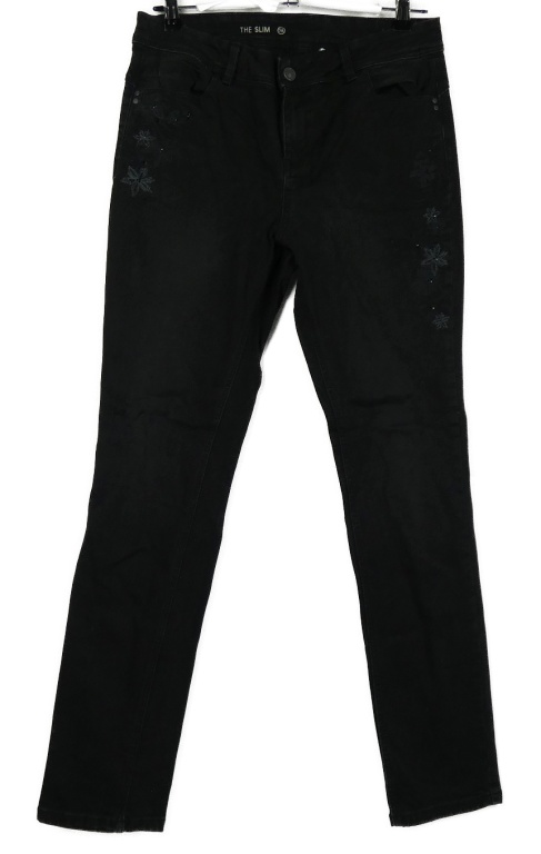 Dámske čierne slim rifle s výšivkou C&A