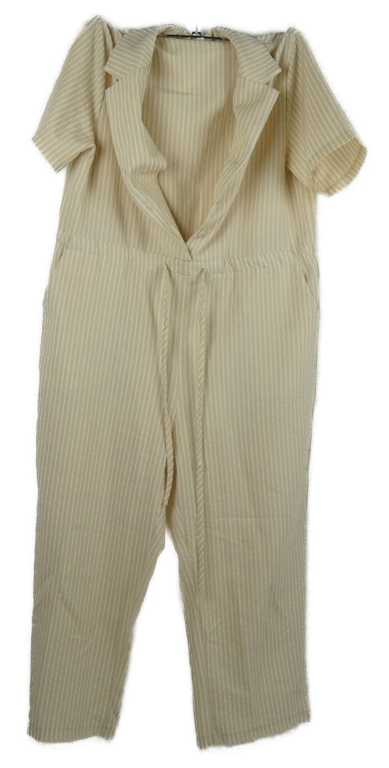 Dámsky pudrovo-biely prúžkovaný krepový nohavicový capri overal