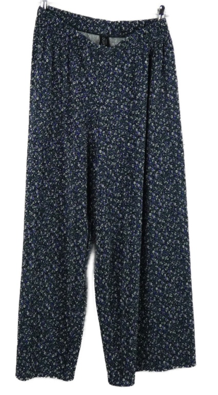Dámske tmavomodro-fialové kvietkovane plisované palazzo nohavice Gina