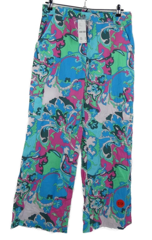 Nové - Dámske modro-ružovo-zelené vzorované culottes nohavice