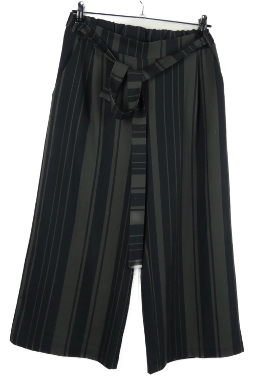 Dámske černo-khaki pruhované culottes nohavice s opaskom Cartoon