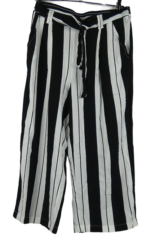 Dámske čierno-biele pruhované culottes nohavice s opaskom