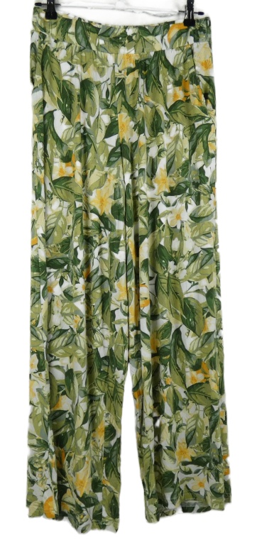 Dámske kaki-bielo-oranžové kvetované palazzo nohavice Tchibo